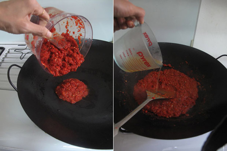 - Step 3 COOK: Transfer the blended paste in a wok. Turn on medium heat. Add lime juice and let it cook until the bright red chili paste turns darker (about 10 min). Then, add sugar to taste.