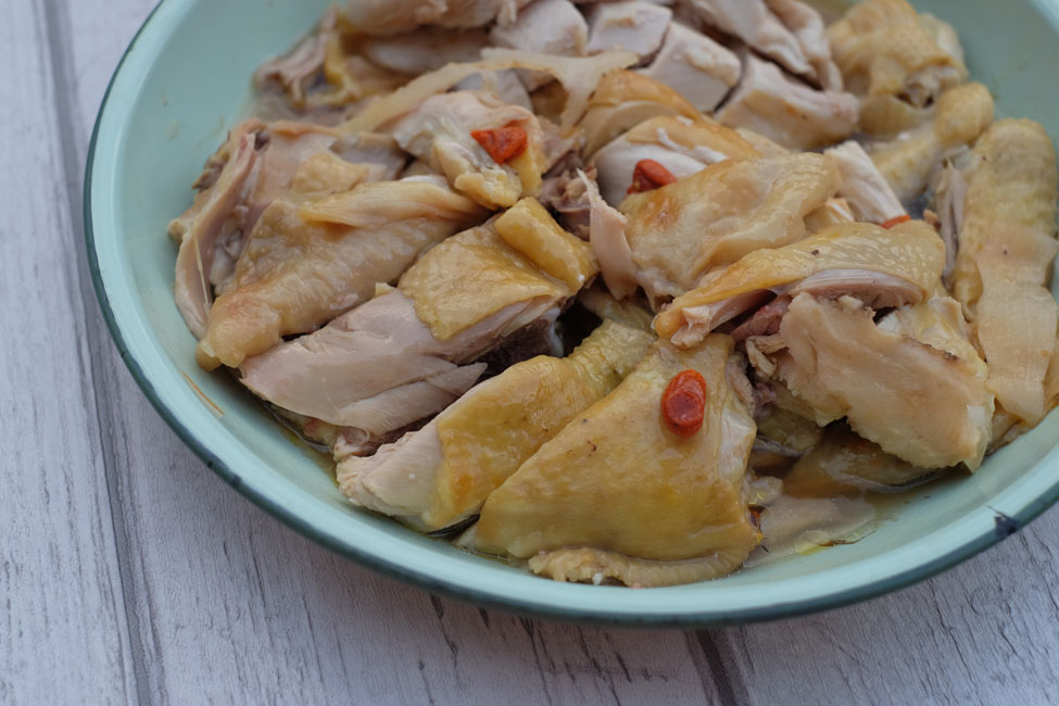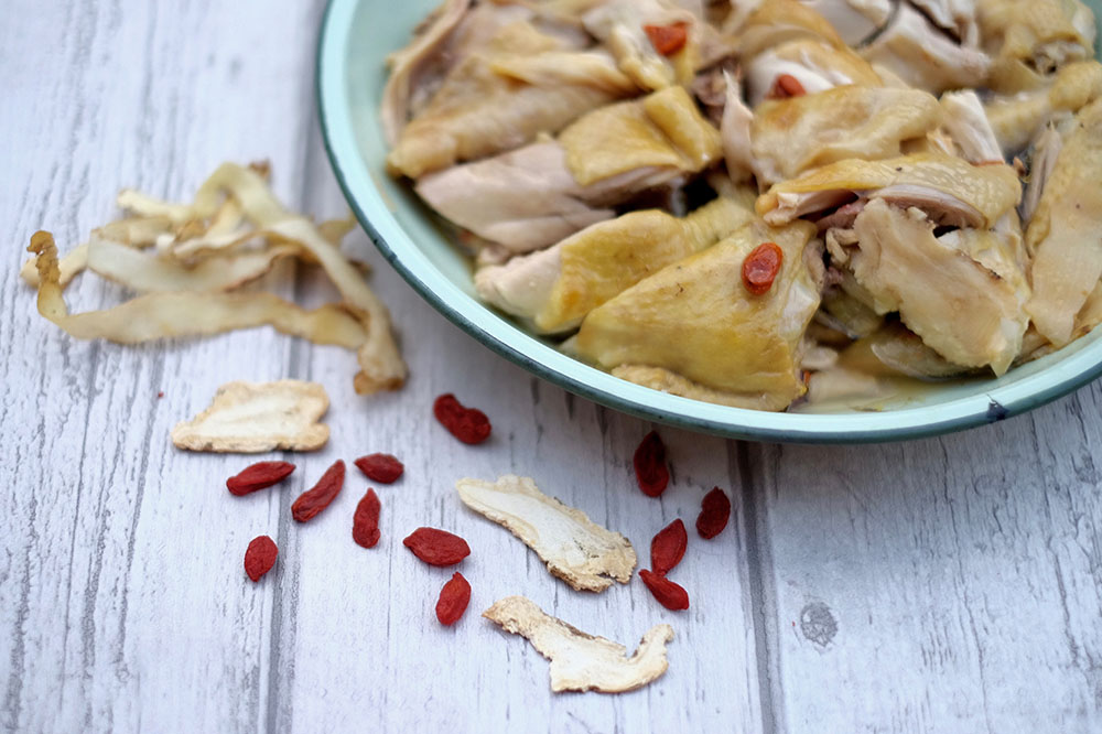 Easy steamed chicken made with three potent Chinese herbs
