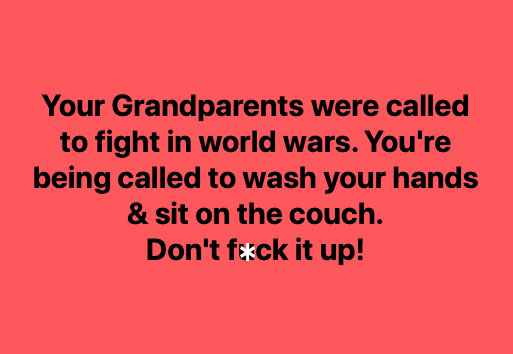 "Don't get sick - coronavirus or other illness. If you're admitted to the hospital, my attention will be halved. Avoid hospitals/clinics" (rephrased)