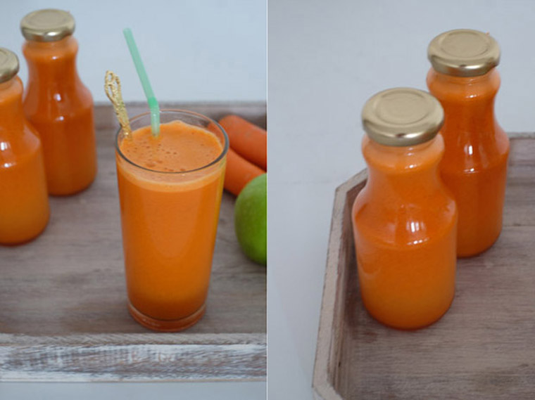I love the carrot- green apple-and ginger combo. Sweet carrot is balanced with sour green apples, while ginger gives a little spicy and peppery taste. As I like tangy drinks, I put quite a lot of green apples. If you like it sweeter have more carrots. You can omit ginger entirely if you don’t like it. Juicing is really flexible!