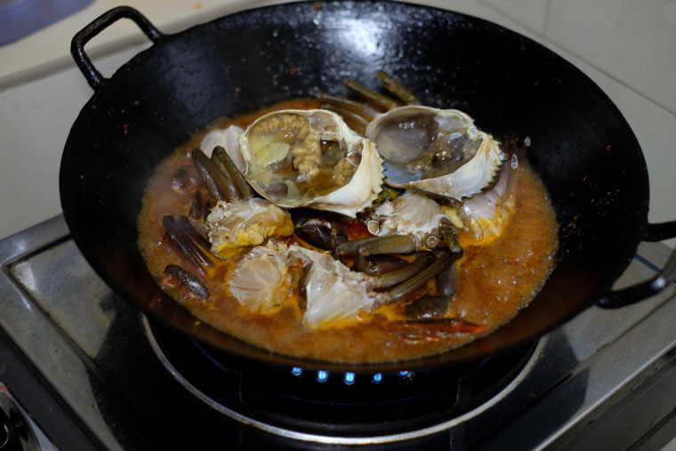 Crab in itself is not an easy dish to cook at home. Firstly, the crab must be alive. The quality of the crab goes down quickly once it dies. So, never buy dead crabs. Secondly, you will need to know how to slaughter it and dismantle it properly.