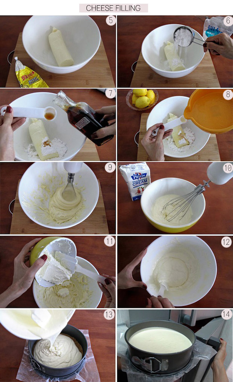 - Step 1 MAKE BISCUIT BASE: Crush the biscuits into crumbs. Add into softened butter. Press the mixture into a 20cm springform tin and refrigerate.
