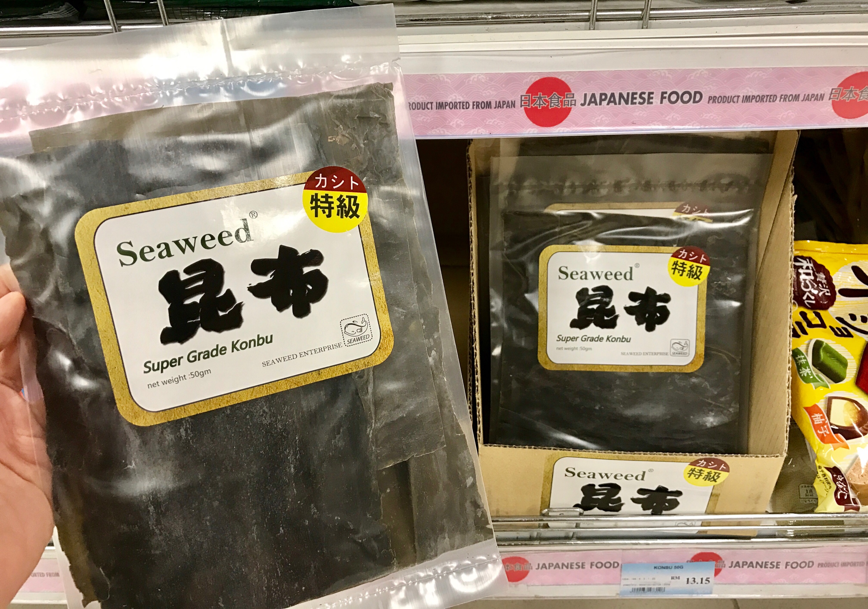 Korean Dried Cut Kombu from Village Grocer (RM 12.60/ 60 g) and Kombu from Planet Organics (RM 9.10/ 13o g)