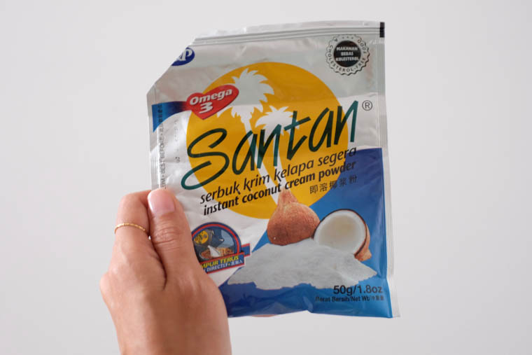 - Coconut cream powder. Using santan powder is so much more convenient. That’s because when I open the UHT coconut milk, I’ll have leftover coconut milk which I may not need yet. I think coconut cream powder is good enough for everyday meal. However, Aunty Gucci told me that coconut milk will make this dish tastes much better.