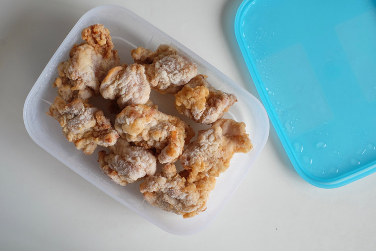 - I like to make extra and keep it in the freezer. On busy days, I’ll thaw it, fry and top it on warm rice for a ‘chicken karaage don’. If you intend to freeze your chicken karaage, don’t fry it for too long – when you defrost and bake/fry it again, you don’t want it to be burned.