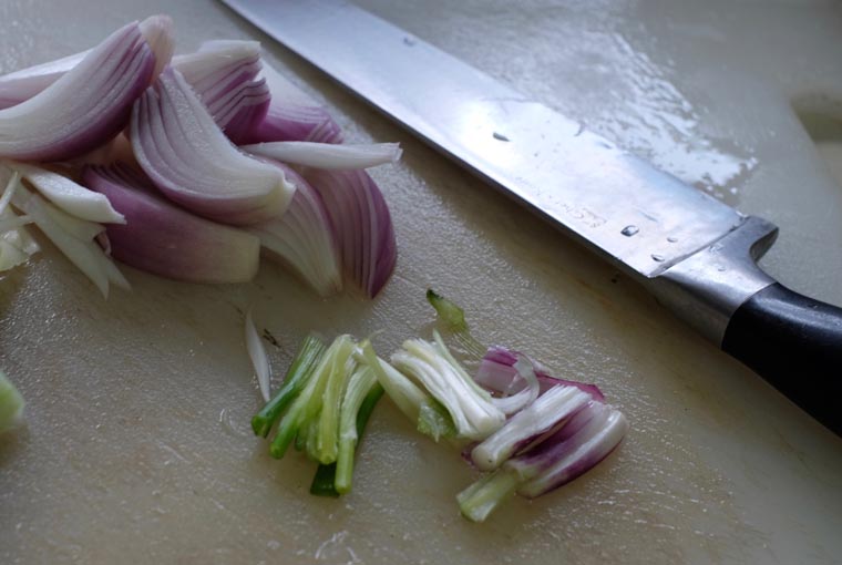 - 1 stalk white spring onion, slice into 2 cm sections