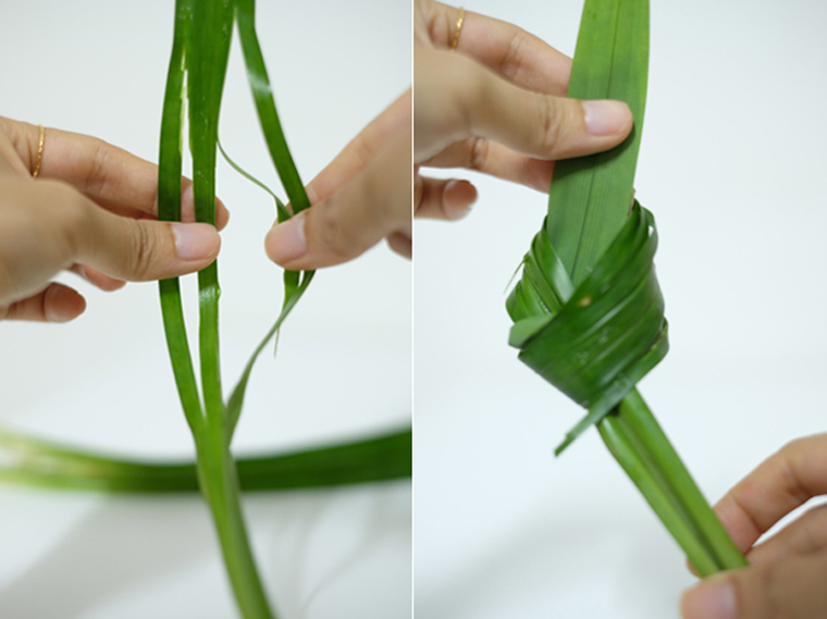 • Step 1 PREP: Break egg into a bowl and whisk well. Lightly tear pandan leaves and tied it into a knot.