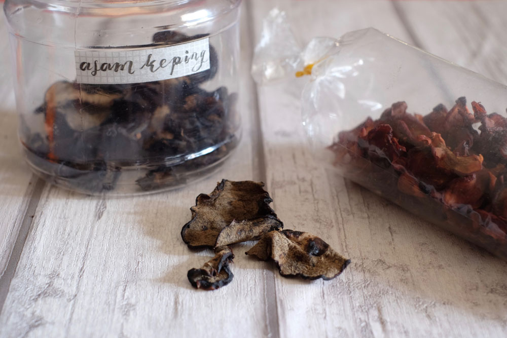 My Mom went to a small town in Terengganu and got a packet of newly dried asam gelugur. It’s lighter in colour. Normally, at the supermarket the asam keping is dried and dark.
