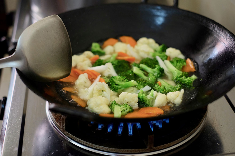 - Step 3 REMOVE VEGETABLES:Â Take out the vegetables into a separate plate. Pour away the water in the wok. Turn on the fire so that water will evaporate entirely before cooking.