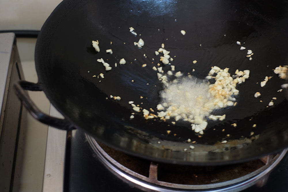 - Step 4 FRY GARLIC:Â When the wok is dry, pour in oil and garlic into a wok. On medium heat, fry garlic until golden brown.
