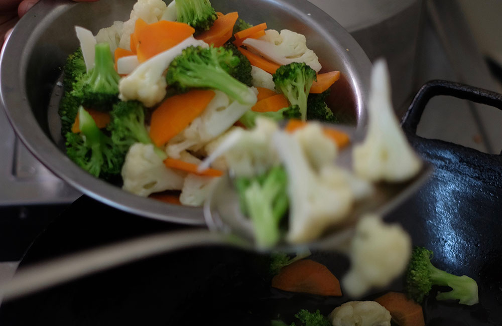 - Step 2 BLANCH: Pour water into a pot and bring to a boil. Put in carrots to blanch for 1 minute. Then put cauliflower to blanch for another 1 minute. Lastly put broccoli and blanch for 30 seconds.