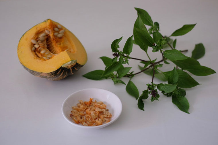 What I love about this dish is that it is not only healthy and delicious, it’s also incredibly easy to cook. You only need 3 main ingredients: pumpkin, dried shrimps, and Thai basil. All these ingredients can be kept for quite a long time in the fridge. Even if I haven’t had the time to do grocery shopping, it’s something that I can whip up easily.