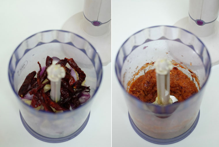 - Step 2 BLEND AROMATICS: Blend shallot, garlic, ginger and dried chilli.