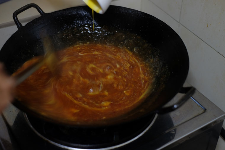 - Step 4 COOK SAUCE:. Add tomato sauce and plum sauce. Mix well. Then add water.