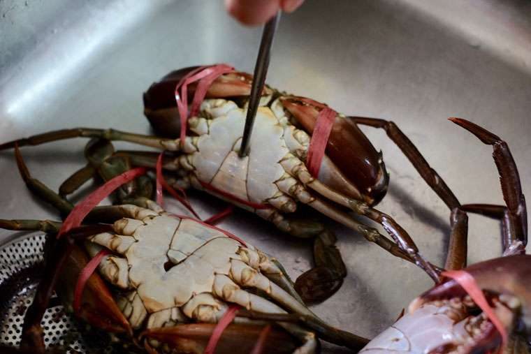 Crab in itself is not an easy dish to cook at home. Firstly, the crab must be alive. The quality of the crab goes down quickly once it dies. So, never buy dead crabs. Secondly, you will need to know how to slaughter it and dismantle it properly.