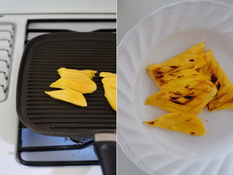 - You can skip grilling the jackfruit. However, I like that the flavour intensified when the fruit receive some heat and the charred marking make the dessert looks even more inviting.