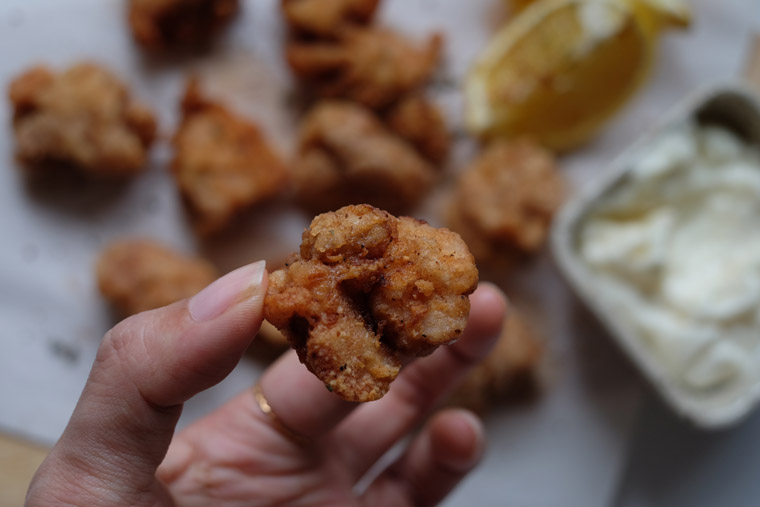 I like to fry my karaage until its very brown and crispy. When I first made it, I serve it with Kewpie mayonnaise and some seaweed strips. Now, I prefer to serve it with a sprinkling of coriander and chili powder. Not only these ingredients are always in hand in a typical Malaysian kitchen and antioxidant-rich herbs and spices is good for us; it add so much flavour and colour to this crunchy snack!