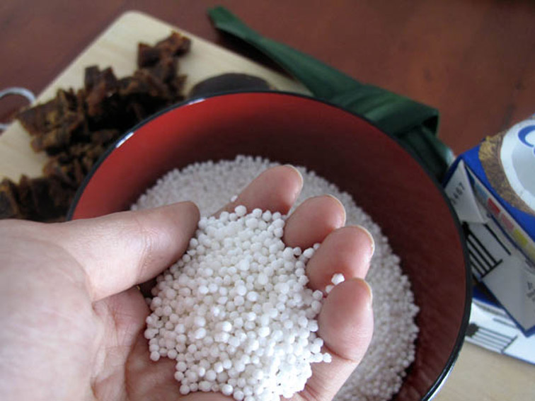 Pearl sago is a starch that comes from sago palm. As it is plant-base, I thought that it should be generally nutritious. However, it contains little protein, vitamins or mineral. Having said that, I still value this whole, unprocessed food. Sago is also used to make keropok lekor (source: wikipedia).