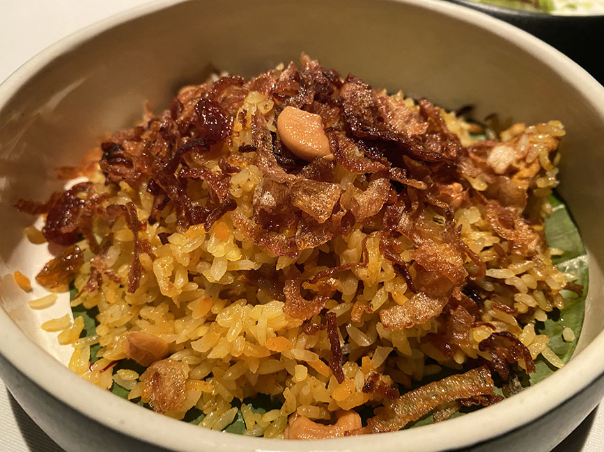 How did I like it? It’s a rather large portion, and by now, my stomach is filled to the brim. The chicken briyani rice is made from short-brain rice hence less starchy. While delicious, I was not able to savour much of it. However, I enjoyed the lighter raita made with yoghurt, cucumber, mustard seeds, and yacon. The cashew sauce with curry leaf oil was also lovely.