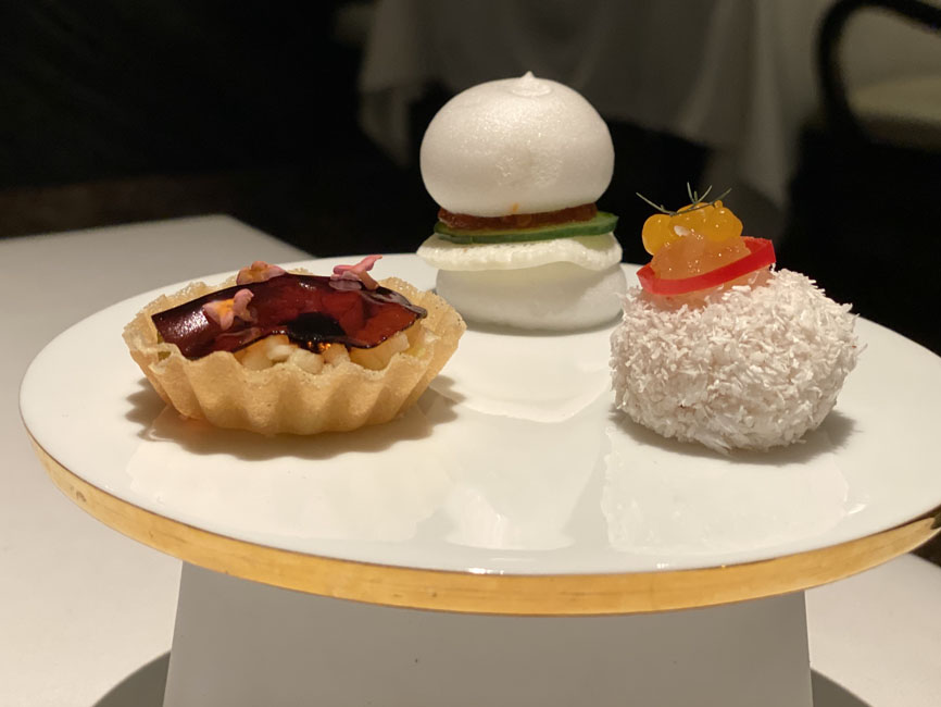 What is it? It’s a bite-size starter featuring iconic Malaysian food – ondeh-ondeh, rojak, and nasi lemak. Rojak is made into a tart and nasi lemak is made into a macaron-sized mini bun. The friendly staff suggested that we eat it at one bit, and according to the sequence.