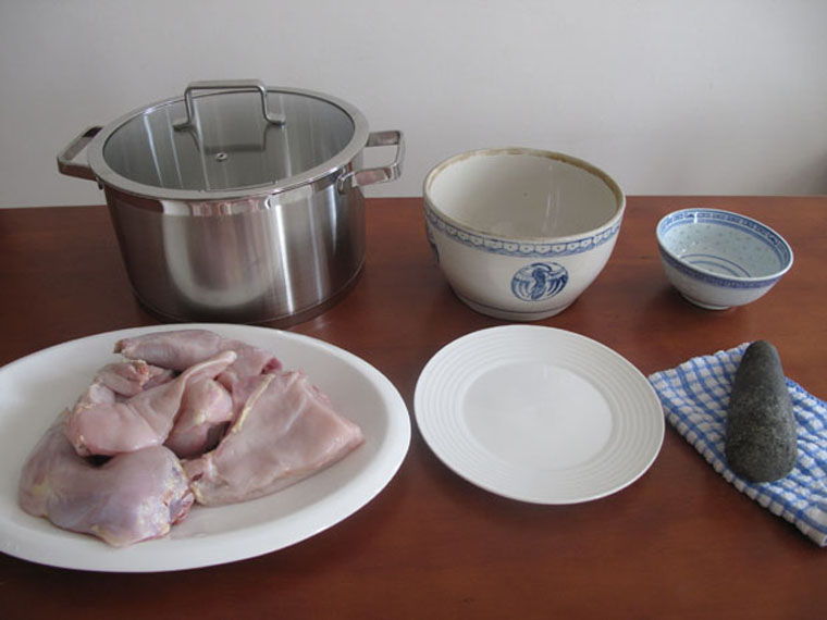 - Step 1 Pound chicken pieces with a pestle, crushing both he flesh and the bones.